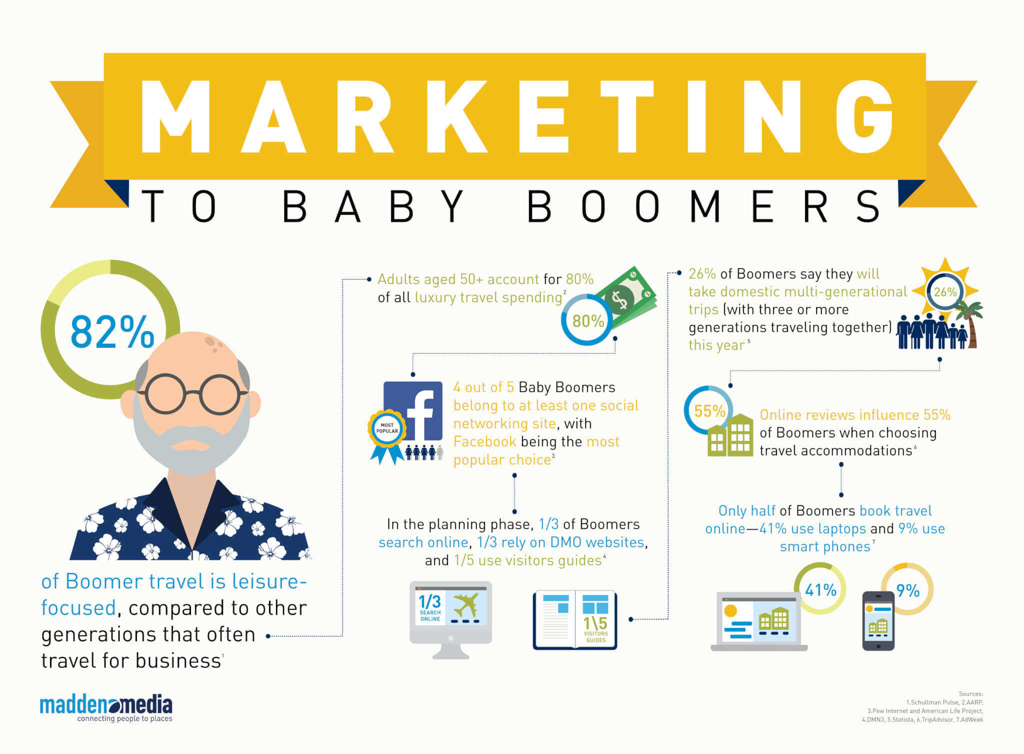 Baby boomers likely aren’t looking for the “lowest price” in town. When selling to boomers, provide the. Population will be over the age of 65,”.